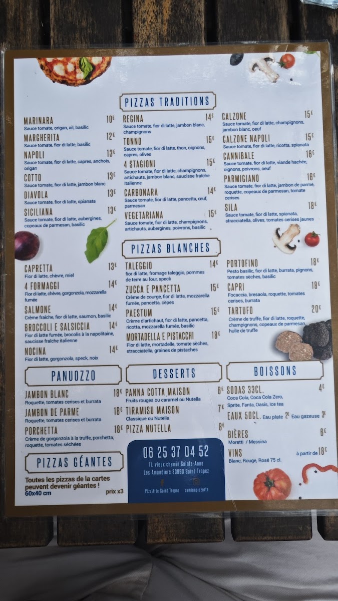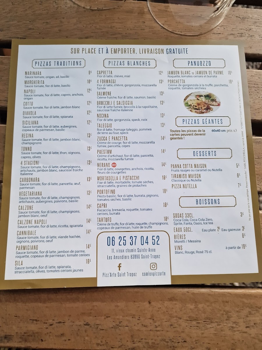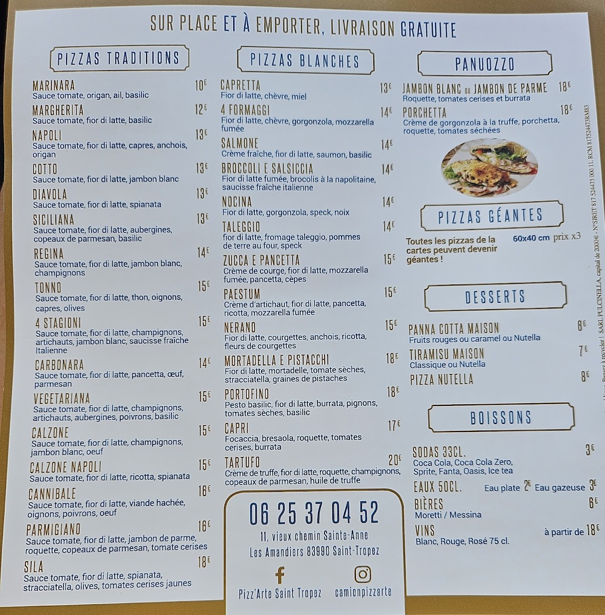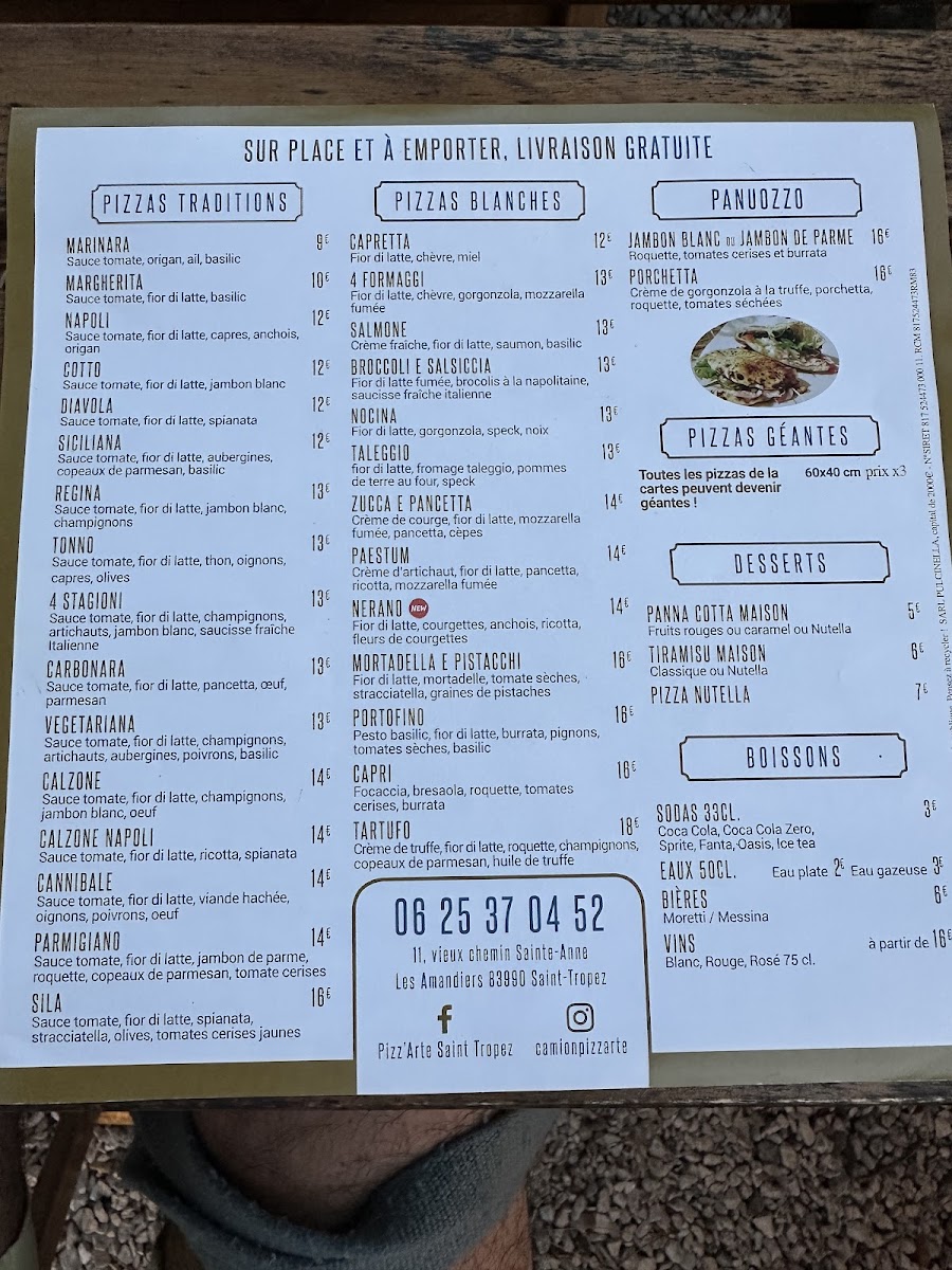 Welcome to Pizz'arte - 11 Vieux Chemin de Ste Anne, a hidden gem in the charming streets of Saint-Tropez. This cozy pizzeria draws food lovers with its unique setup—a food truck converted into a kitchen, where delicious pizzas are crafted with love. The menu is extensive, catering to a variety of tastes, ensuring that everyone finds something to savor.
