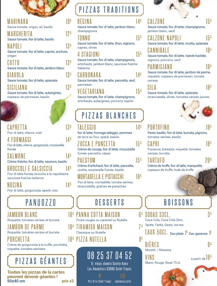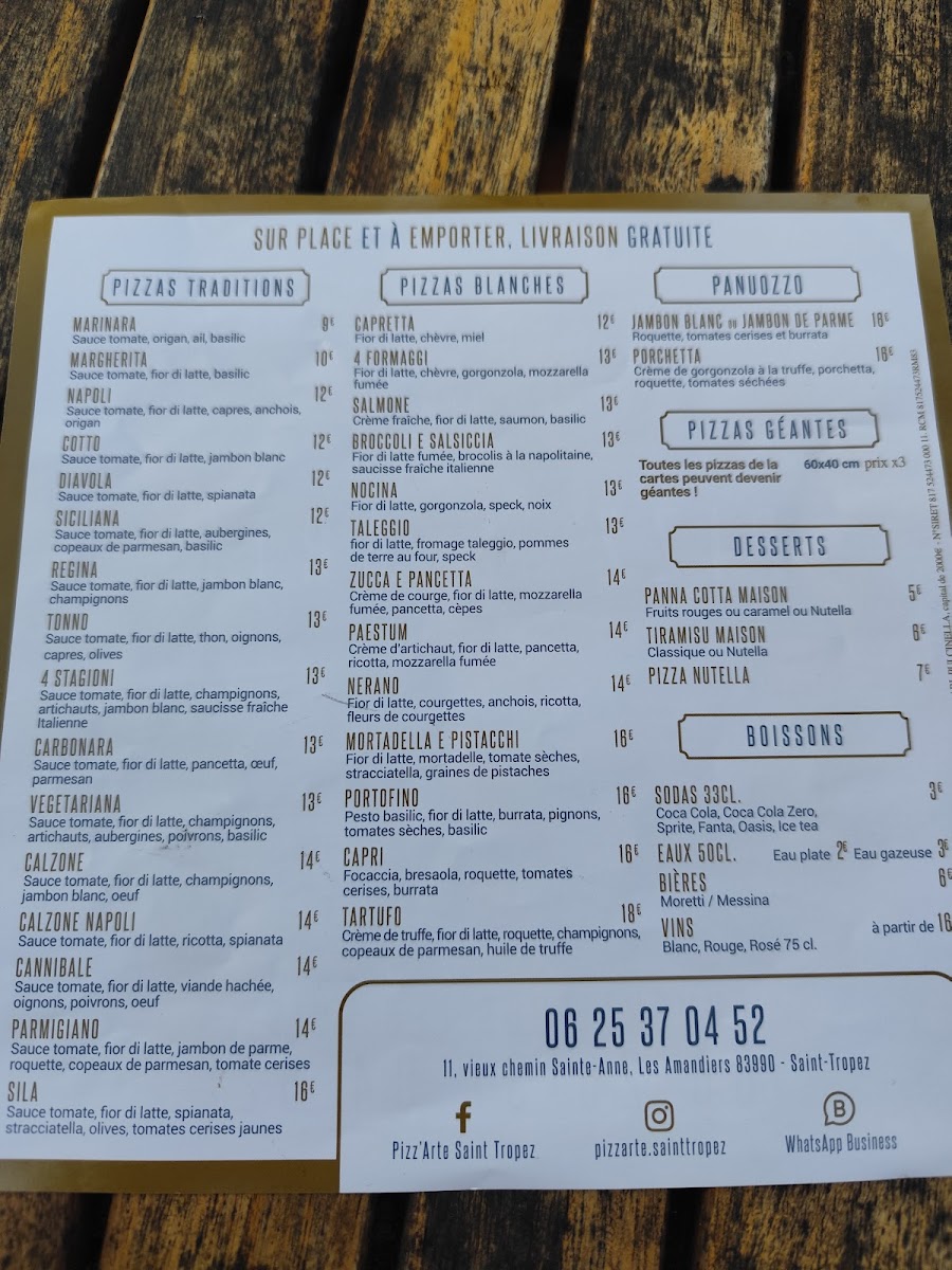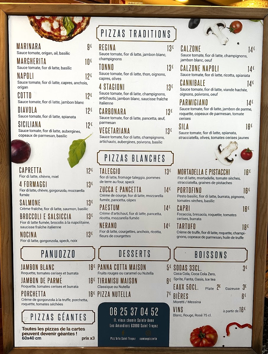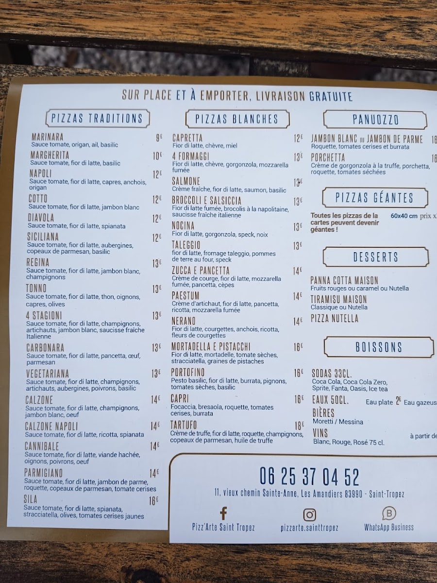 Welcome to Pizz'arte - 11 Vieux Chemin de Ste Anne, a hidden gem in the charming streets of Saint-Tropez. This cozy pizzeria draws food lovers with its unique setup—a food truck converted into a kitchen, where delicious pizzas are crafted with love. The menu is extensive, catering to a variety of tastes, ensuring that everyone finds something to savor.